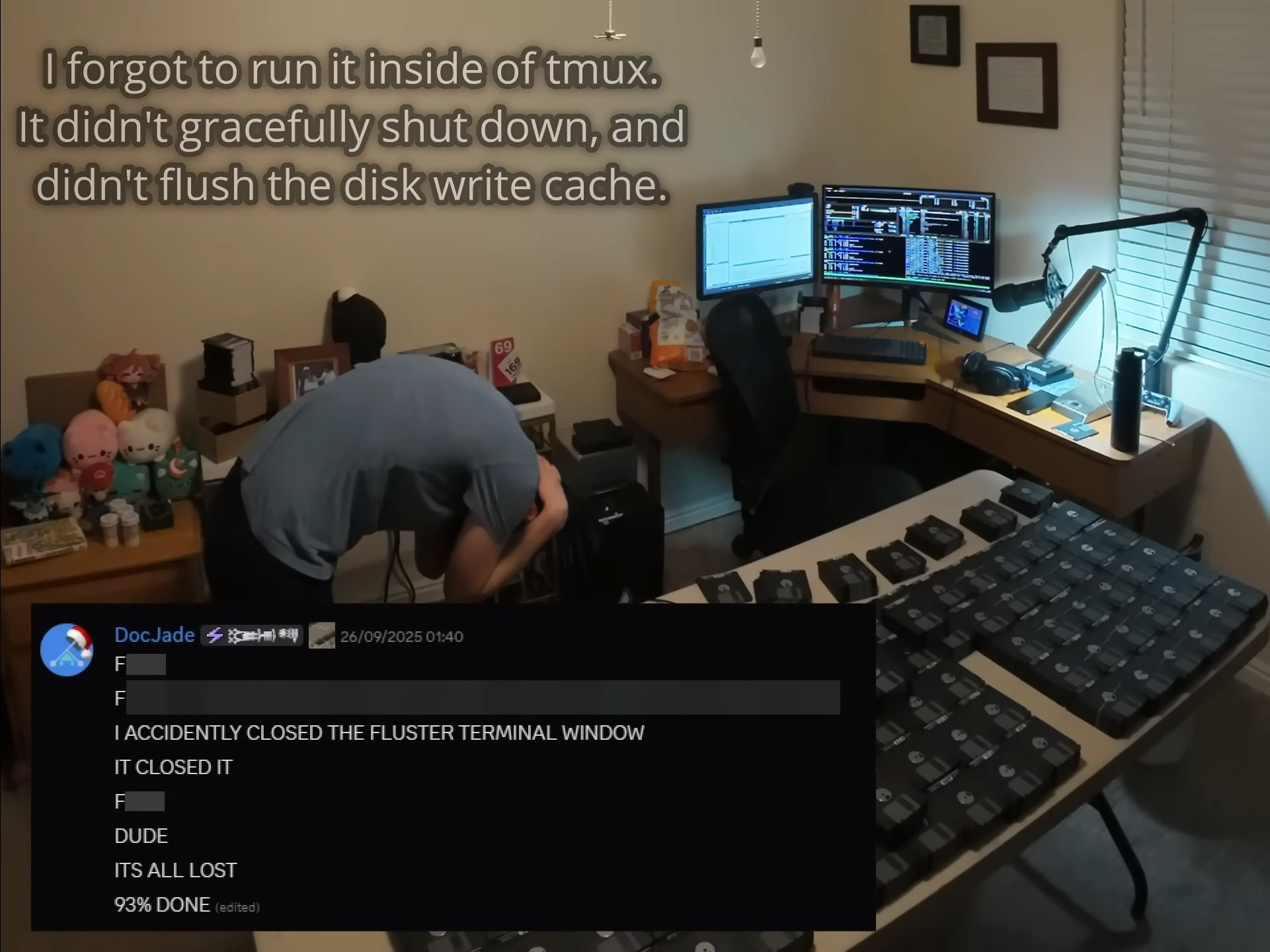 Для этого он написал собственную файловую систему Fluster на Rust с поддержкой коррекции ошибок и загрузки данных в ОЗУ при смене дискет. Файлы игры пришлось дробить на блоки по 512 байт, а первый запуск занял неделю. Итог – успешная загрузка меню и 9 часов игры, несмотря на проблемы с блокировкой файлов.