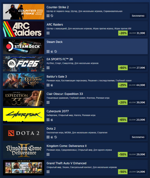 Valve подвела итоги продаж Steam за 2025 год