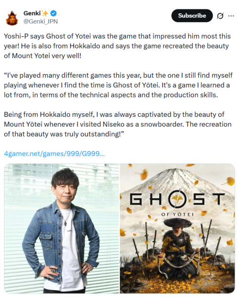 Yoshi-P всё ещё играет в Ghost of Yotei