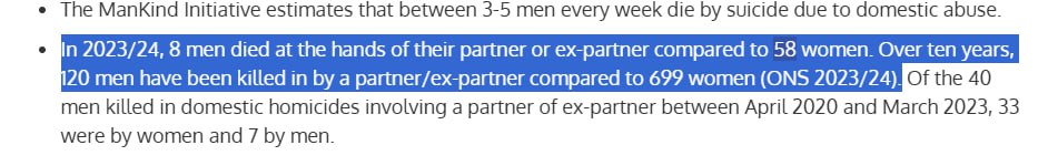 Ну и мои пруфы. Статистика по Великобритании, но думаю уловить суть можно. В статистике не только жены и мужья, а любые партнеры (но думаю этим можно пренебречь, мы все таки спорили не за статус отношений, а за пол убийц и жертв). https://mankind.org.uk/statistics/statistics-on-male-victims-of-domestic-abuse/
