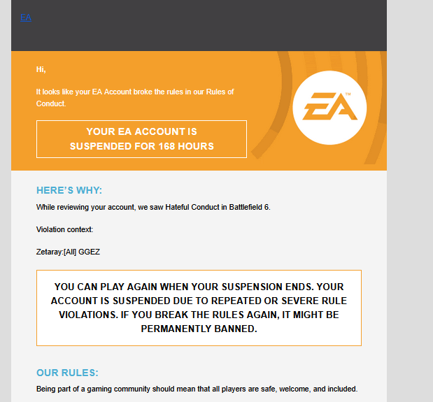Игрок Battlefield 6 был забанен за ответ GGEZ на такое же сообщение, что система классифицировала как hate speech.