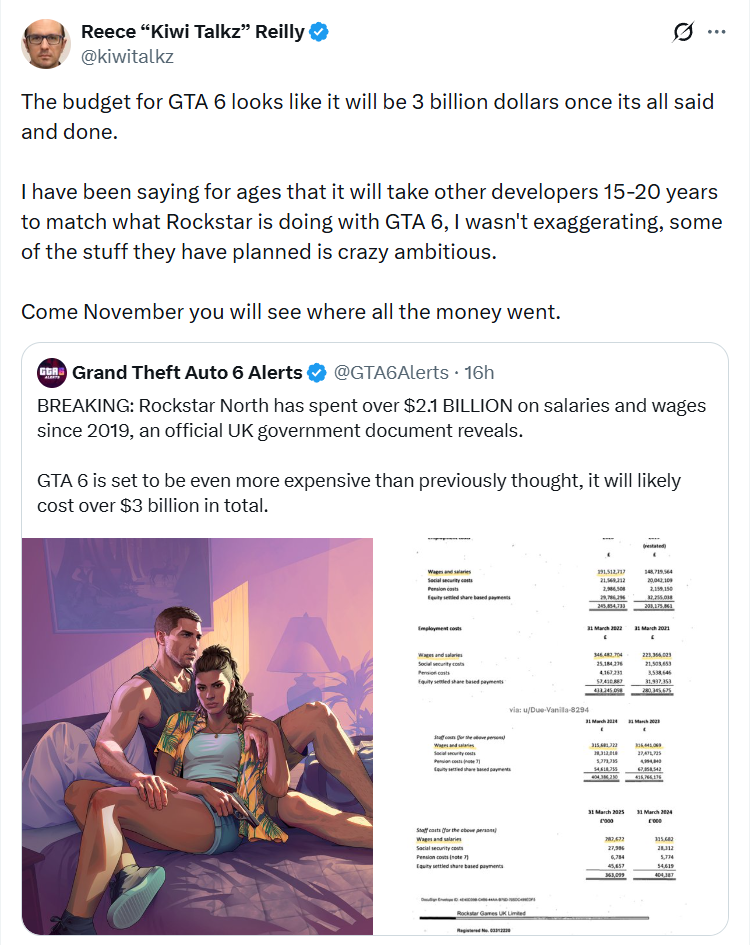 По новым оценкам, бюджет Grand Theft Auto VI может составить около 3 миллиардов долларов к моменту релиза.