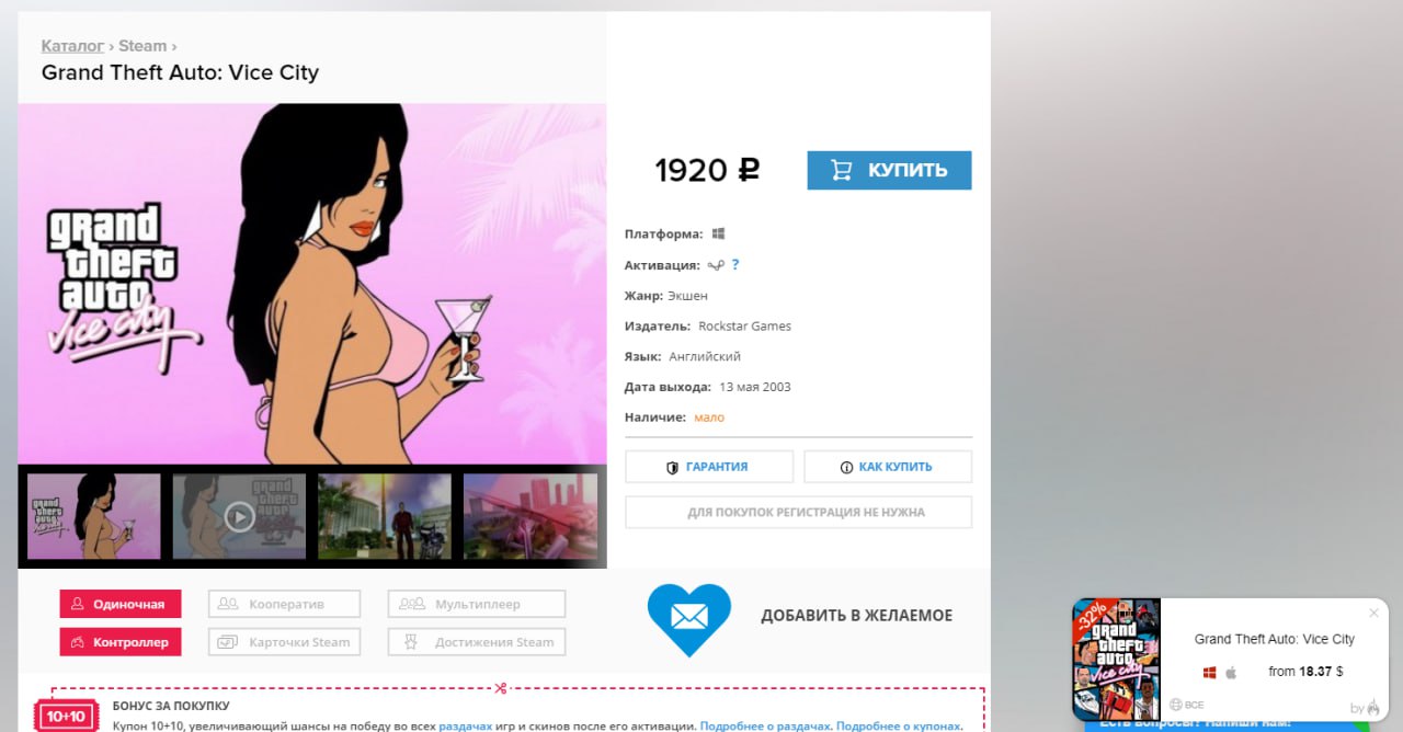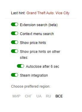 Ну и скриншоты, как это выглядит. Регион цен можно настроить тоже.