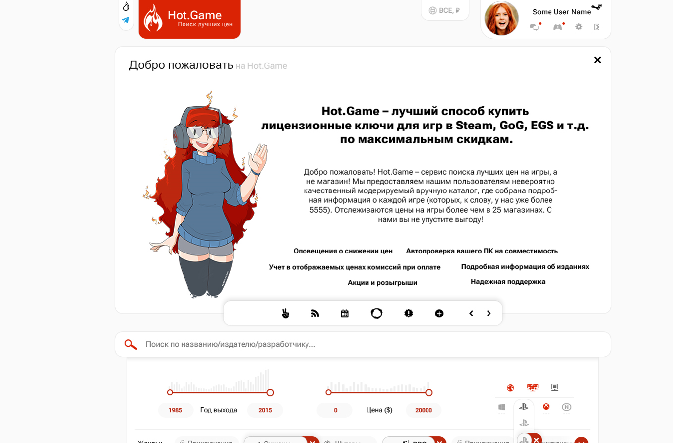 И так, ближе к сути: идея в том, чтобы слайдер состоял из разных «режимов» или «страниц», между которыми пользователь может переключаться. В нем будут отображаться не только поступления в каталог (как сейчас), но и много другого: последние новости, календарь выхода игр, главные новинки, разные сообщения для пользователей (вроде акций, раздач, возможно ссылок на свежие Dev-репорты) и т.д. Возможно, подборки лучших коллекций в будущем и т.д.