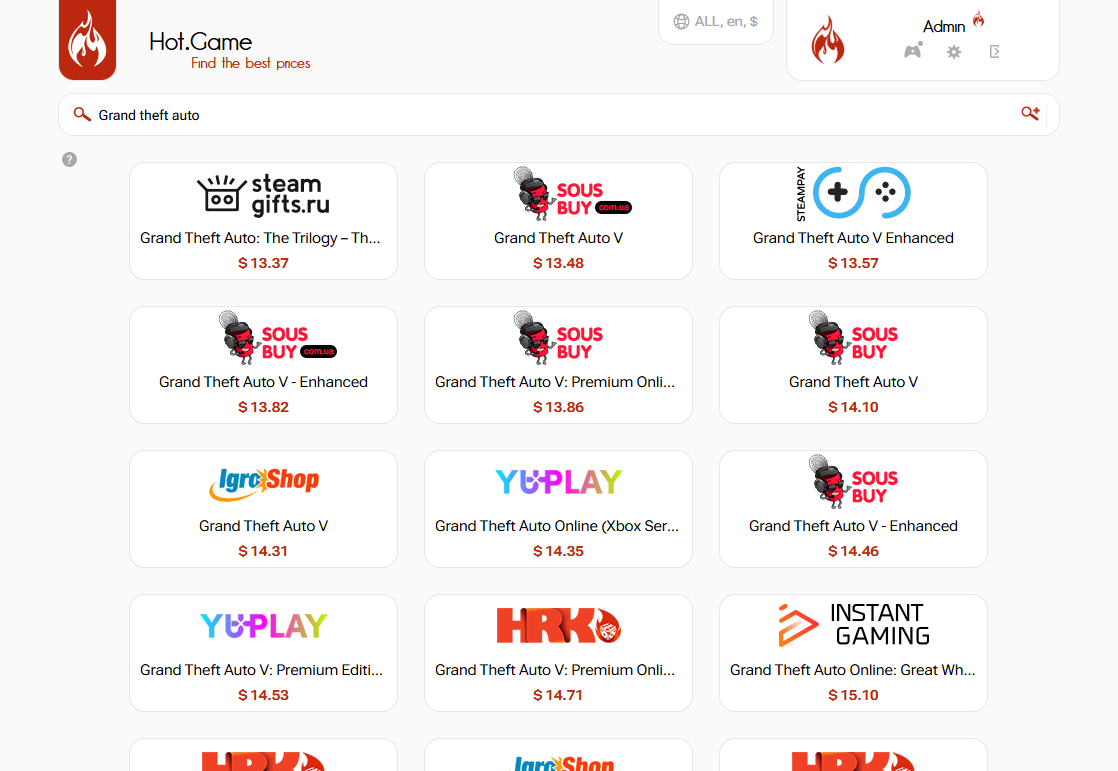 - Дает возможность искать лучшие цены даже на те игры, которых нет в нашем каталоге. По сути такой себе поисковик сразу по куче магазинов.