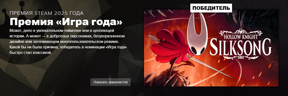Компания Valve подвела итоги «Премии Steam 2025». Несмотря на доминирование Clair Obscur: Expedition 33 в большинстве категорий, звание «Игра года» по версии сообщества Steam досталось Hollow Knight: Silksong – одному из самых ожидаемых релизов последних лет.