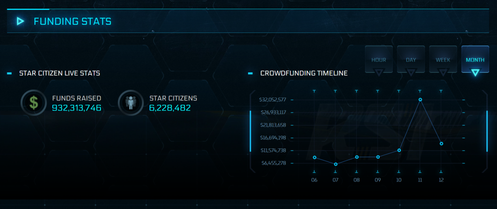 Космический проект Star Citizen спустя 13 лет после старта краудфандинга вплотную приблизился к отметке в $1 млрд. Команда Roberts Space Industries уже собрала более $932 млн от свыше 6,22 млн участников, не считая частных инвестиций.