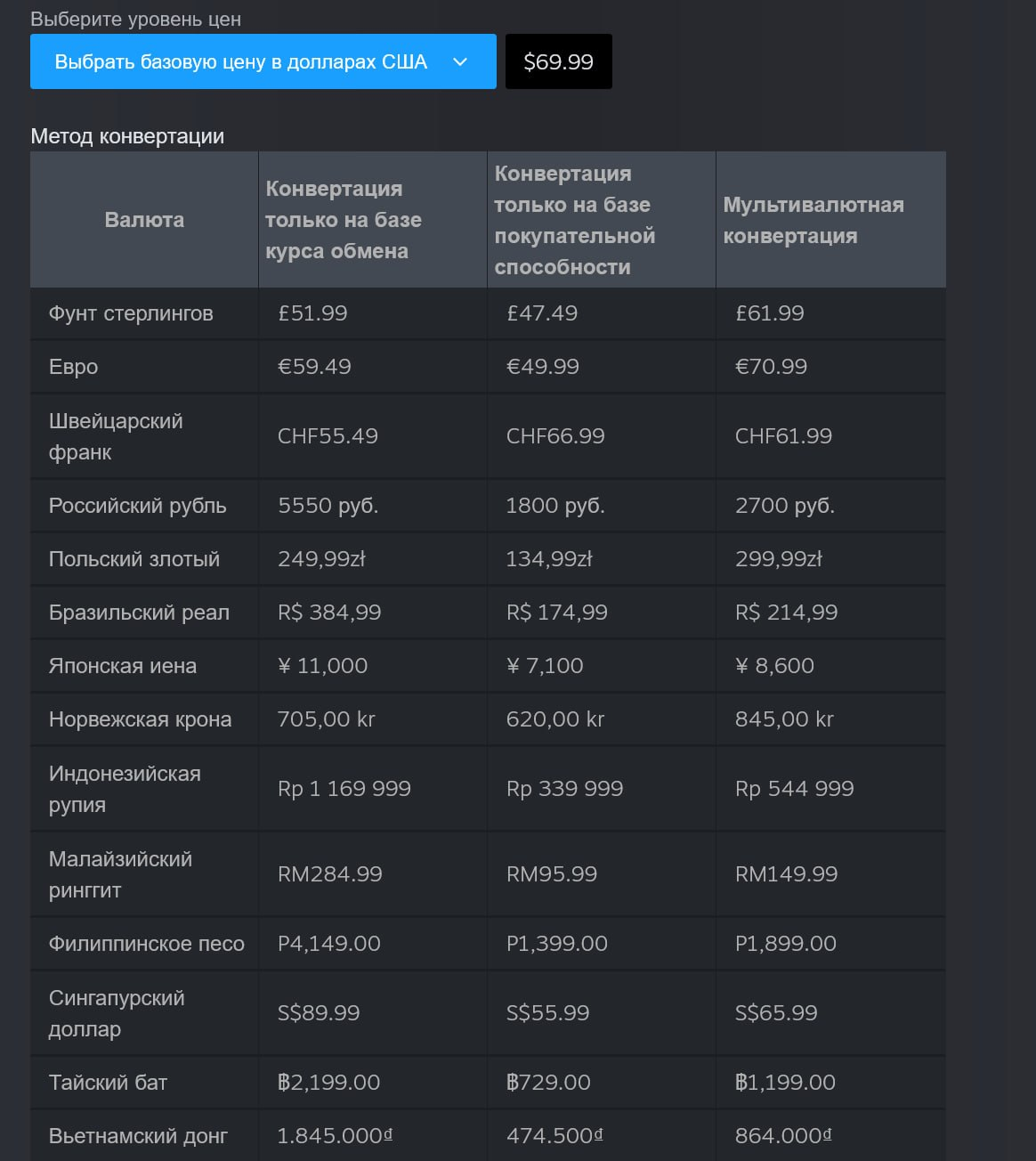 Valve обновила систему рекомендаций по региональным ценам в Steam, сделав её более гибкой и адаптивной к разным рынкам. Помимо расчёта по курсу валют, доступны модели с учётом покупательной способности и смешанный вариант с актуальными экономическими данными.